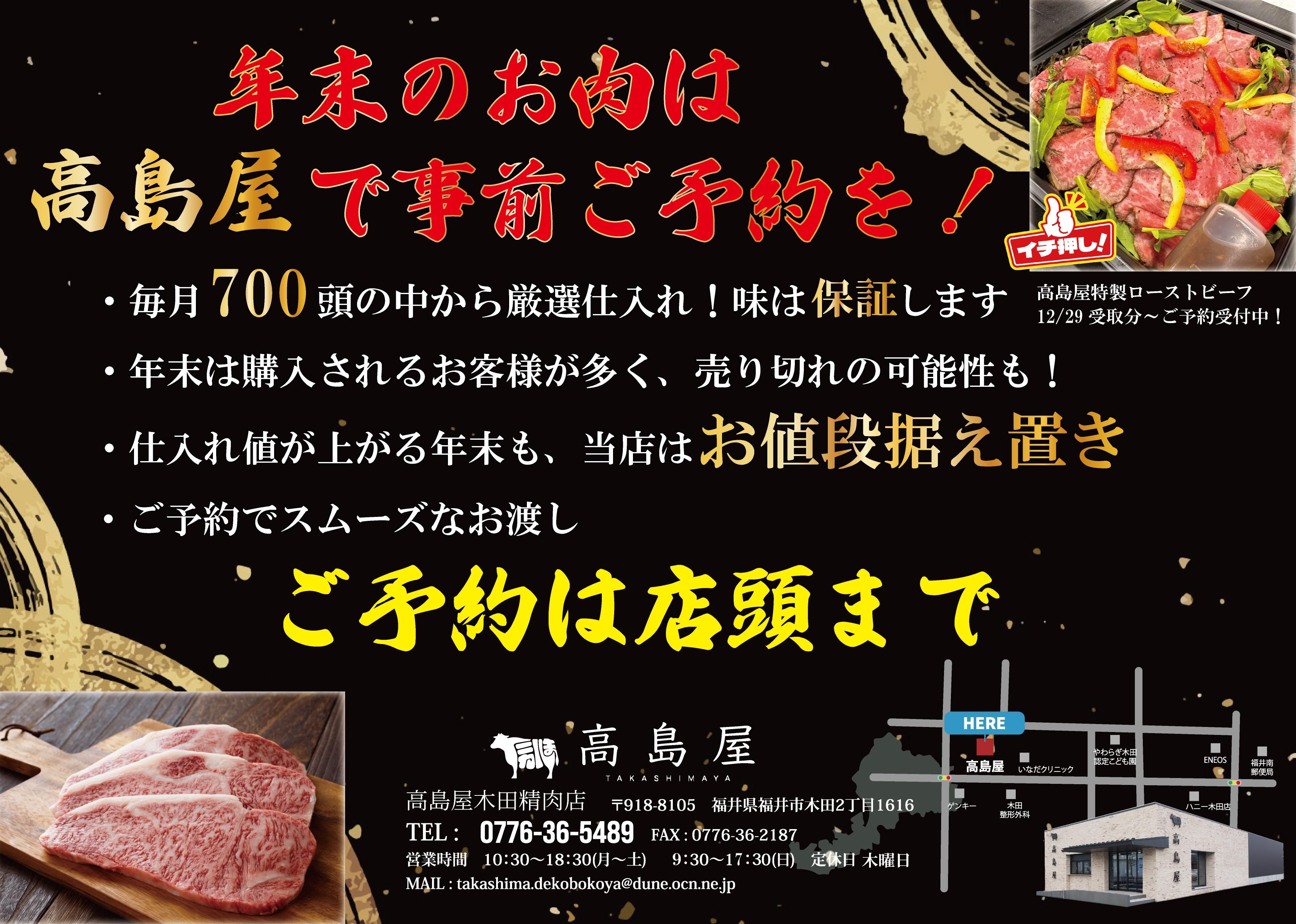 年末はお肉の需要が高まり、売り切れの可能性もございます